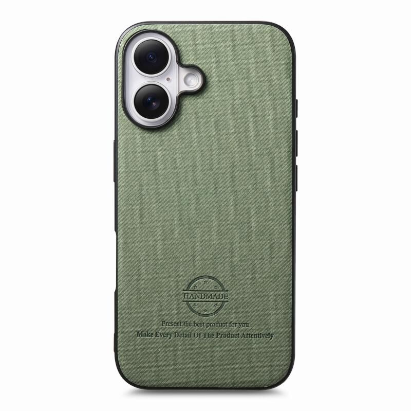 For iPhone 16 Plus Twill Fabric Leather Skin Back Phone Case(Green)
