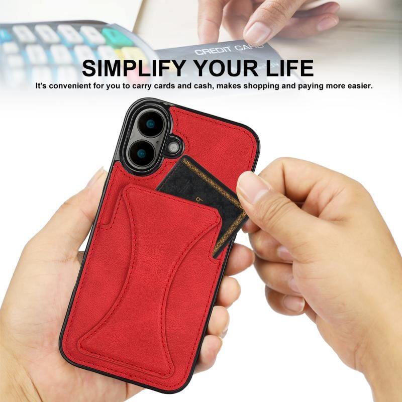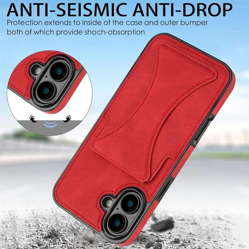 Θήκη προστασίας κινητού τηλεφώνου για iPhone 16 Plus, εξαιρετικά λεπτή, αντικραδασμική με βάση στήριξης (Κόκκινο)