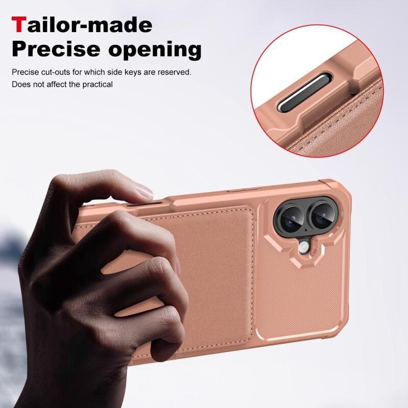 Θήκη τηλεφώνου από δέρμα με κάθετη θήκη καρτών και φλις για iPhone 16 Plus (Χρυσορόδινο)