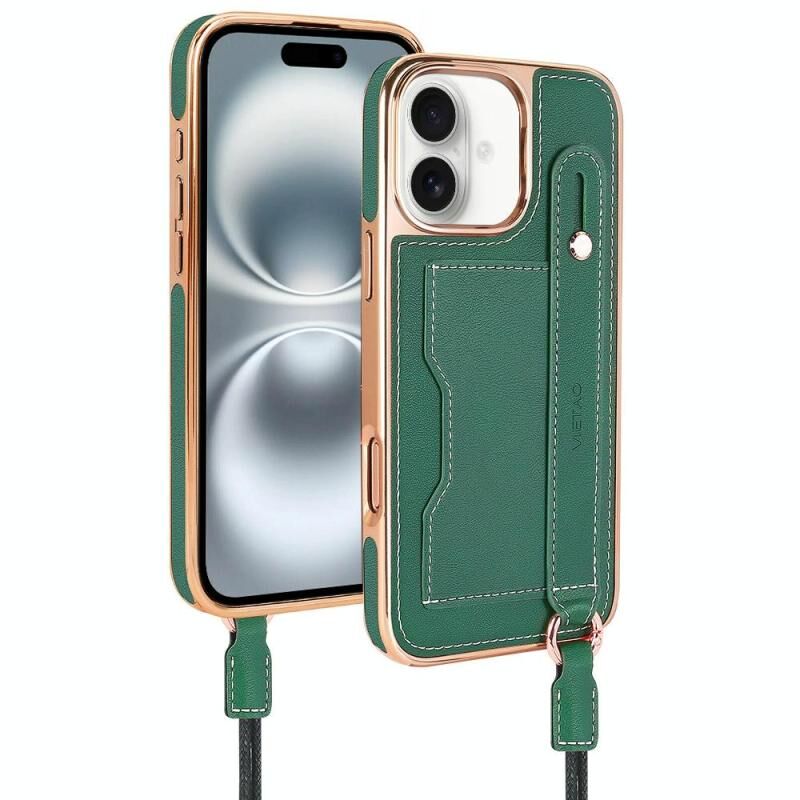 Θήκη κινητού τηλεφώνου VIETAO για iPhone 16 Plus με υποδοχή κάρτας, λουρί καρπού και κορδόνι (Πράσινο) (πράσινο)