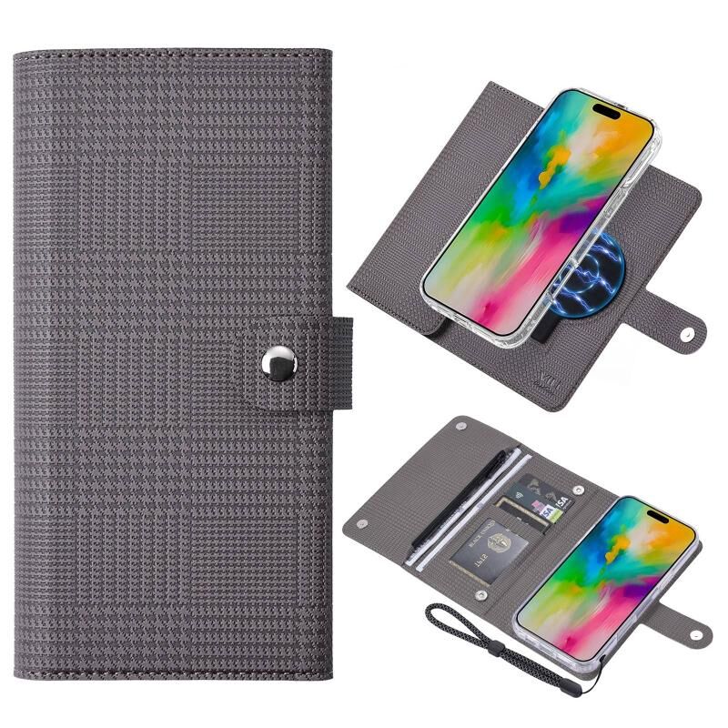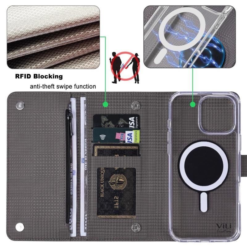 Θήκη τηλεφώνου δερμάτινη, αναδιπλούμενη, μαγνητική, με MagSafe και RFID για iPhone 16 Plus ViLi GHB-C Series (Γκρι) (Γκρι)