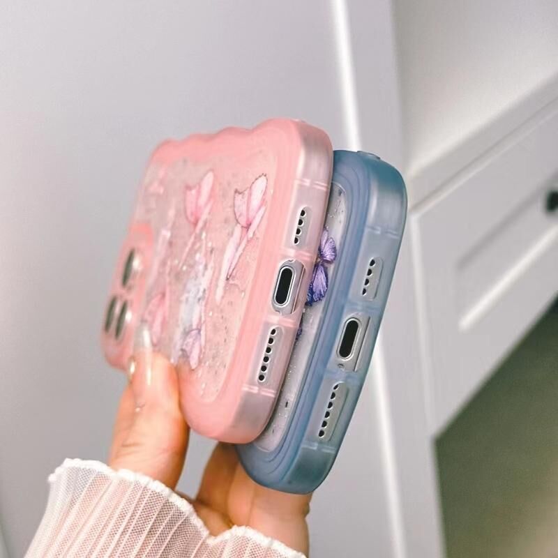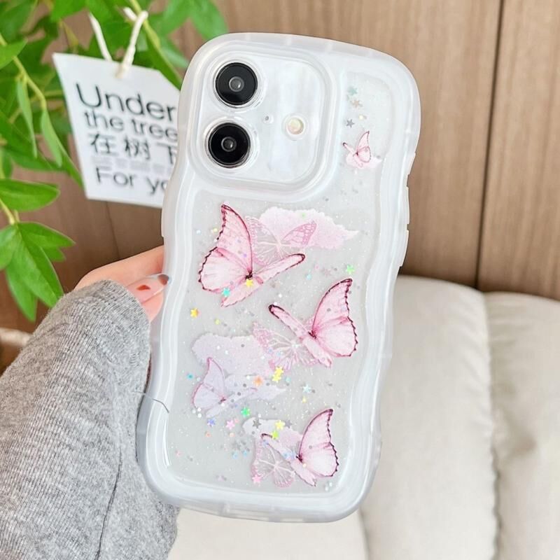 Θήκη τηλεφώνου για iPhone 16 Plus με κυματιστά άκρα, σχέδιο πεταλούδας, υβριδική κατασκευή TPU και PC (Λευκό)