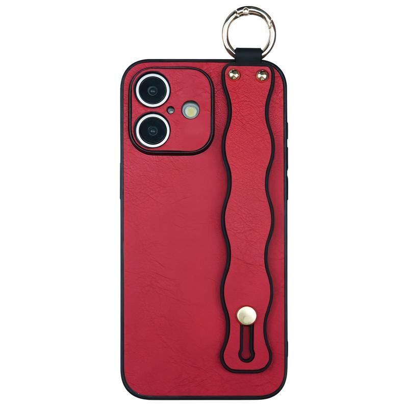 For iPhone 16 Plus Wavy Wristband Bracket TPU Phone Case(Red)