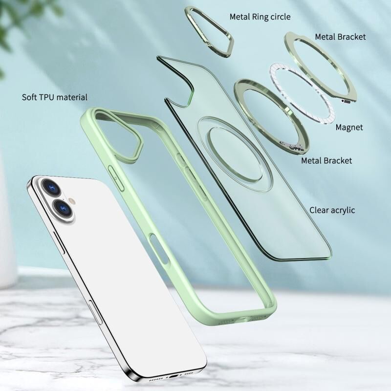 Θήκη τηλεφώνου για iPhone 16 Plus Σειρά Wing MagSafe Μαγνητικός Δακτύλιος Στήριξης (Πράσινο αβοκάντο)