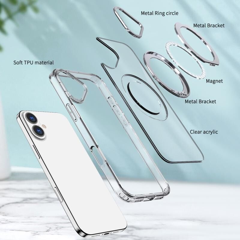 Θήκη τηλεφώνου για iPhone 16 Plus Σειρά Wing MagSafe Μαγνητικός Δακτύλιος Στήριξης (Διαφανές)