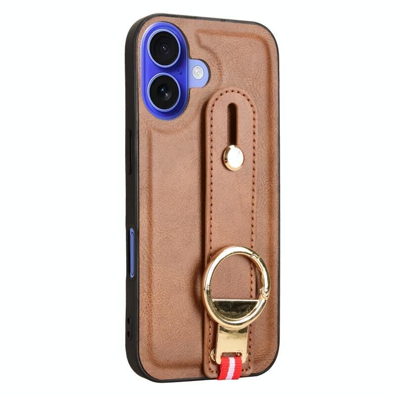 Για iPhone 16 Plus Θήκη τηλεφώνου με δερμάτινη επένδυση καρπού (Καφέ)