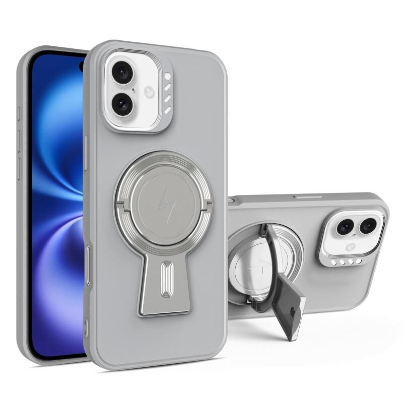 For iPhone 16 Plus Y-shape Holder MagSafe Rugged Shockproof Phone Case(Grey)