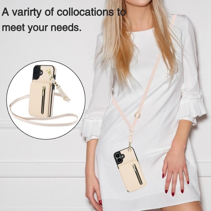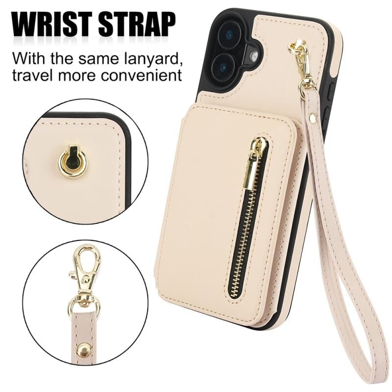 Θήκη κινητού τηλεφώνου με φερμουάρ και διπλό κορδόνι για iPhone 16 Plus YM006, με αίσθηση δέρματος (Βερίκοκο)