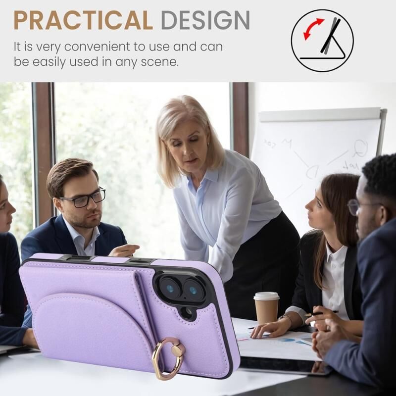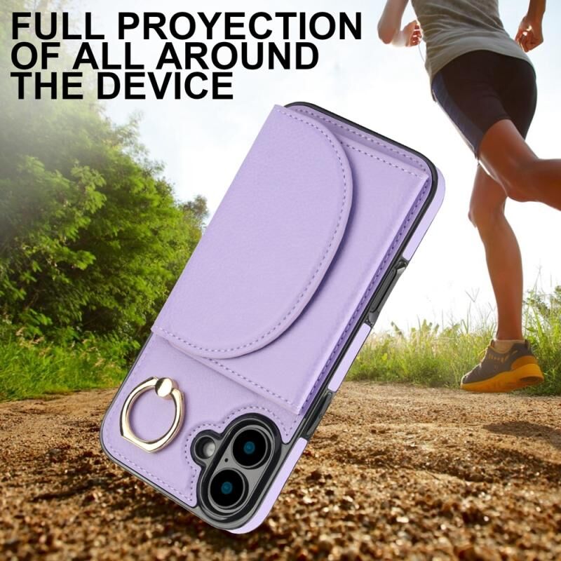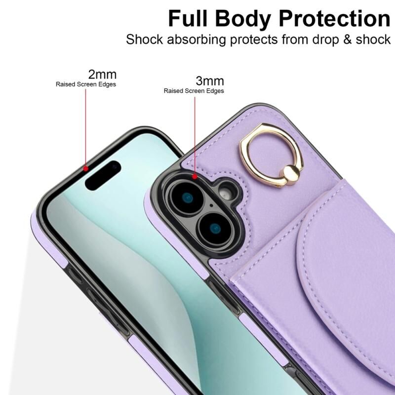For iPhone 16 Plus YM007 Ring Holder Card Bag Skin Feel Phone Case(Purple)