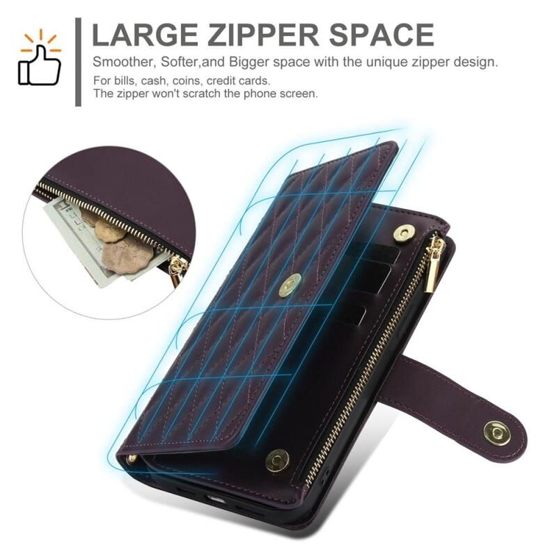 For iPhone 16 Plus YM016 Rhombic Zipper Card Wallet Leather Phone Case with Lanyard(Dark Purple)