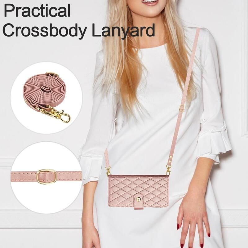 Θήκη τηλεφώνου από δέρμα με φερμουάρ και κάρτες για iPhone 16 Plus YM016, με ρόμβους και κορδόνι (Ροζ χρυσός)