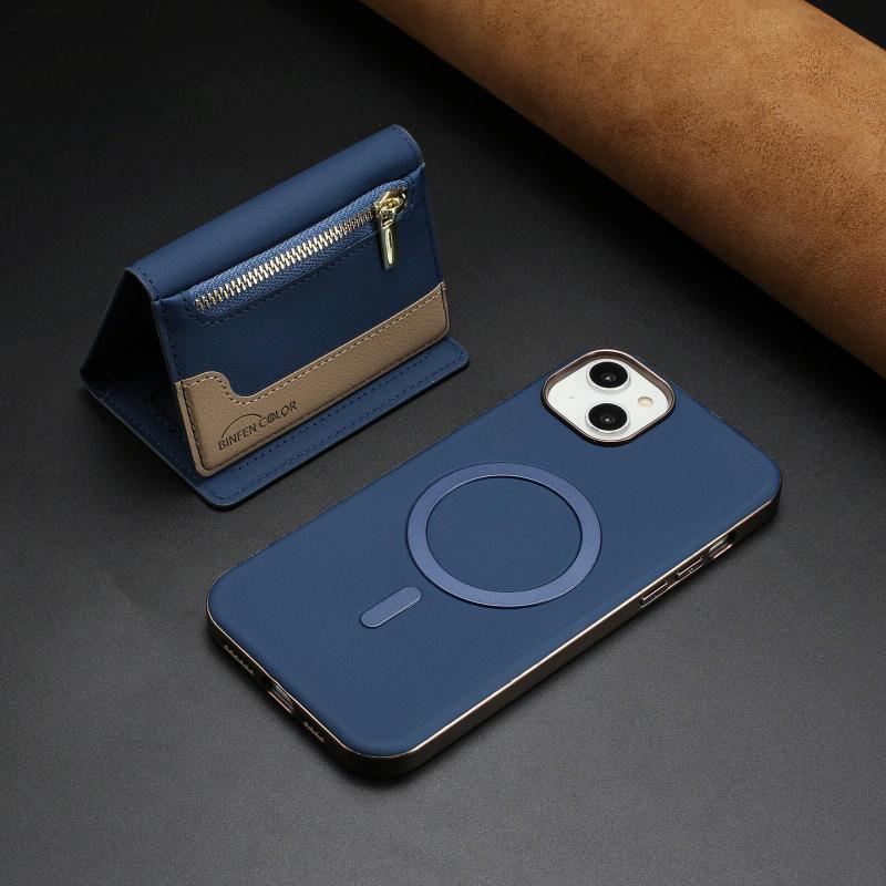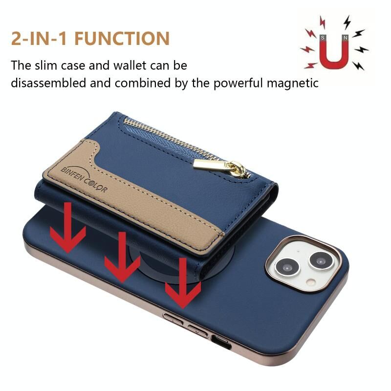 For iPhone 16 Plus Zipper Horizontal Magnetic Card Bag RFID MagSafe Phone Case(Dark Blue)