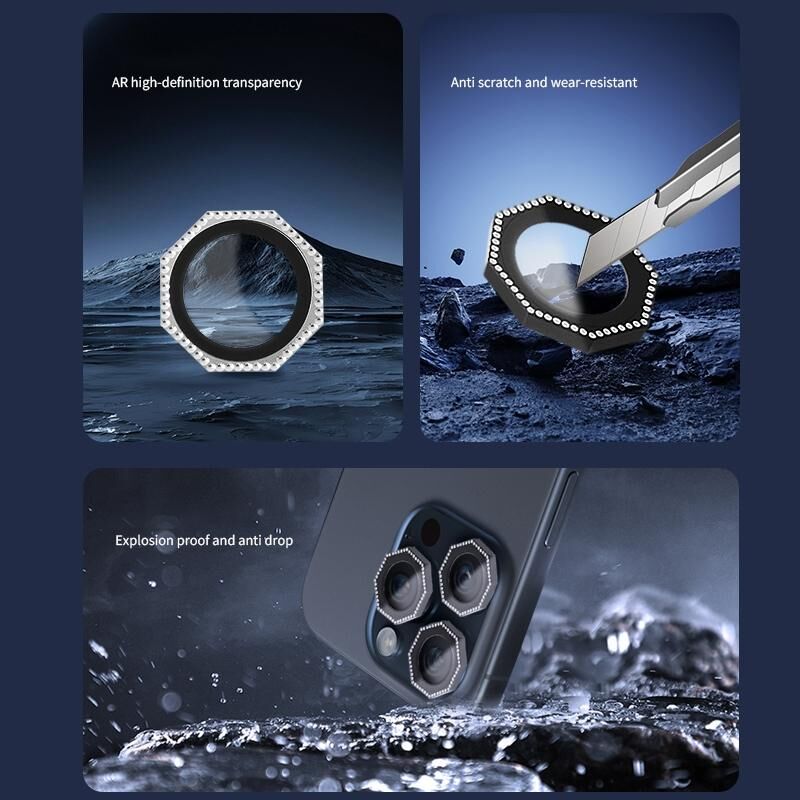 Προστατευτική Μεμβράνη Φακού HD για iPhone 16 Pro / 16 Pro Max με Διαμάντι (Ροζ Κόκκινο)