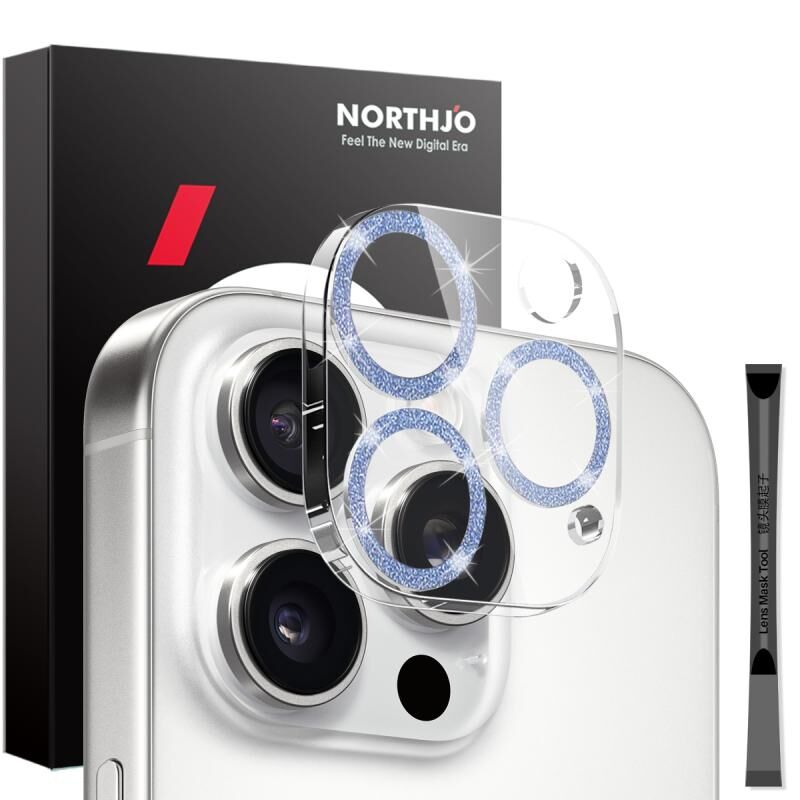 Προστατευτικό Φακού Κάμερας για iPhone 16 Pro / 16 Pro Max NORTHJO με Λαμπερό Δακτύλιο, 3D Επικάλυψη Τεμπέρ Γυαλιού (Ροζ) (NORTHJO)