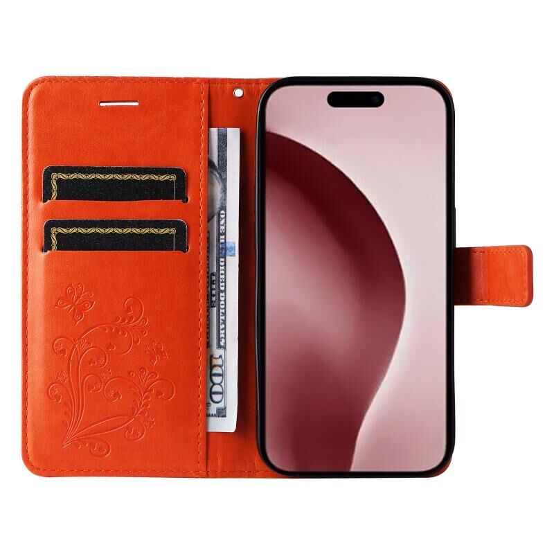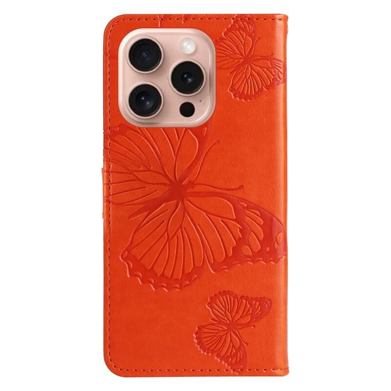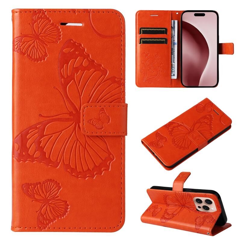 For iPhone 16 Pro 3D Butterfly Embossed Pattern Flip Leather Phone Case(Orange)