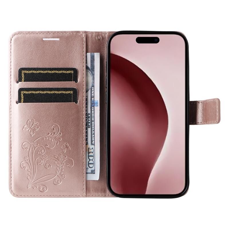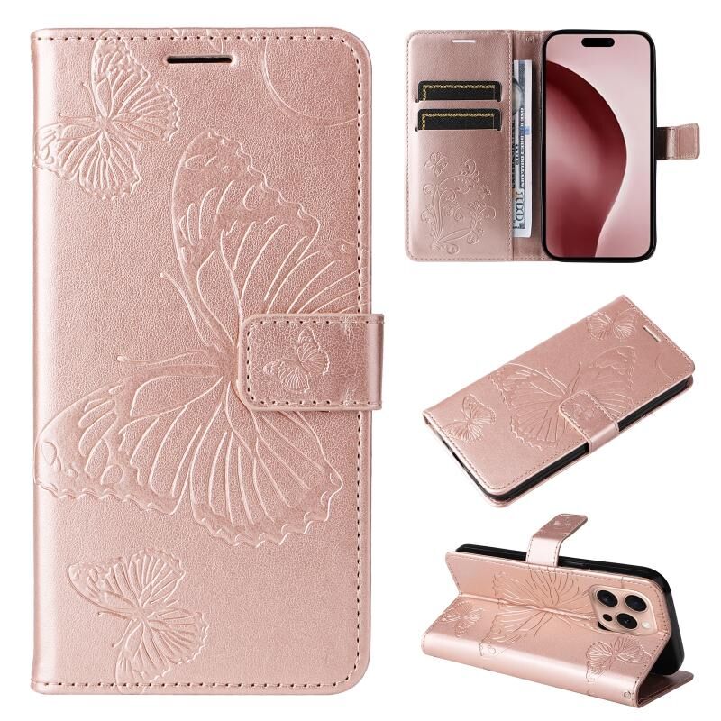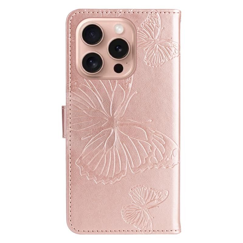 For iPhone 16 Pro 3D Butterfly Embossed Pattern Flip Leather Phone Case(Rose Gold)