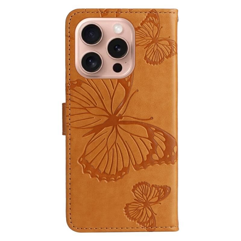 For iPhone 16 Pro 3D Butterfly Embossed Pattern Flip Leather Phone Case(Yellow)