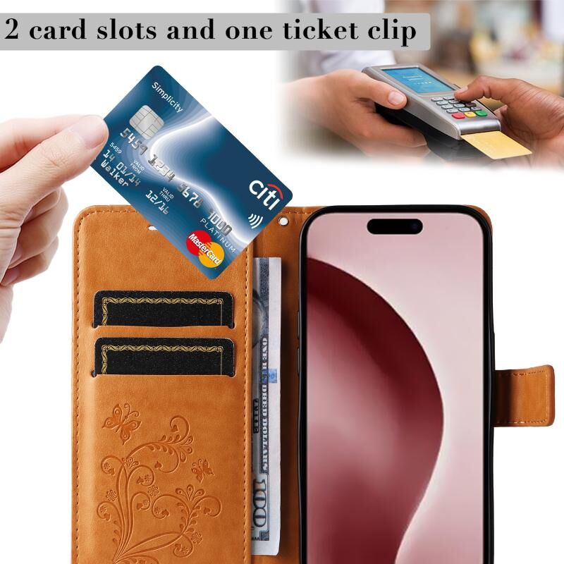4. Wallet Function: The leather case is equipped with card slots for placing cards and a small amount of cash.