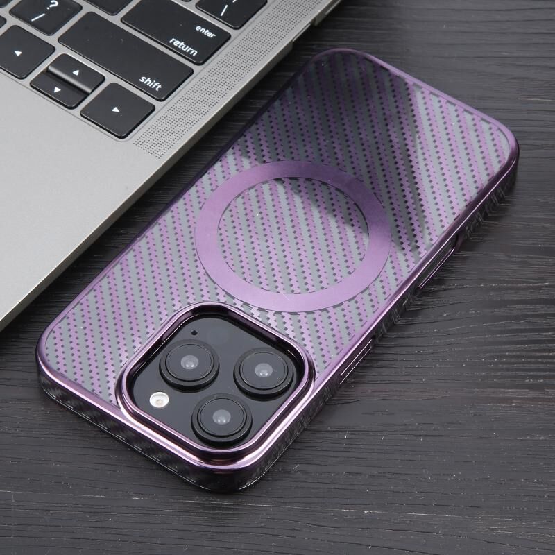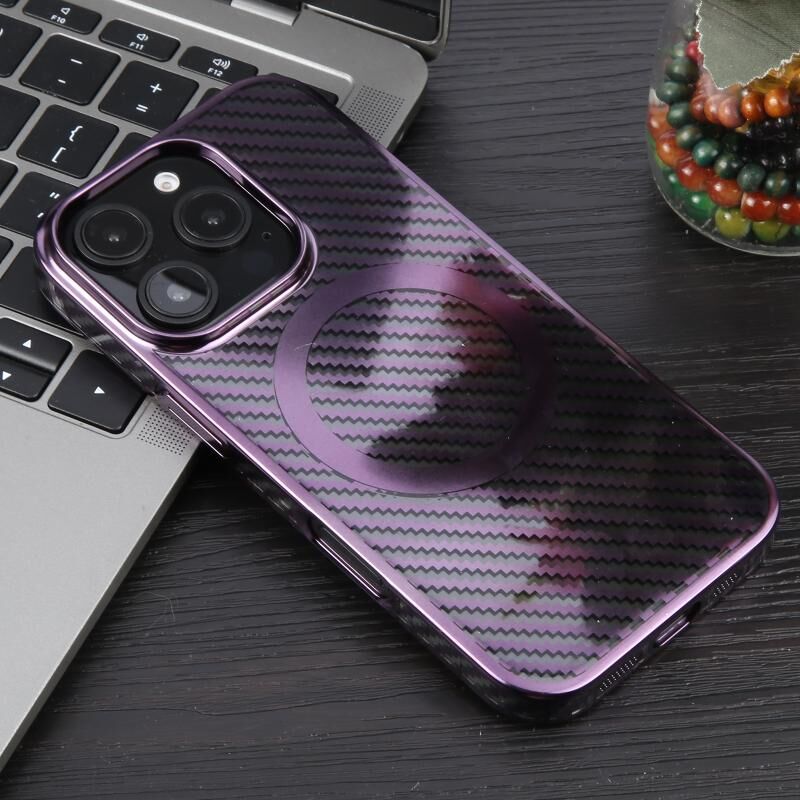 Θήκη κινητού τηλεφώνου για iPhone 16 Pro 6D με επένδυση ανθρακονημάτων, διαφανής, με MagSafe, από πολυανθρακικό (PC) (Μωβ Aurora)