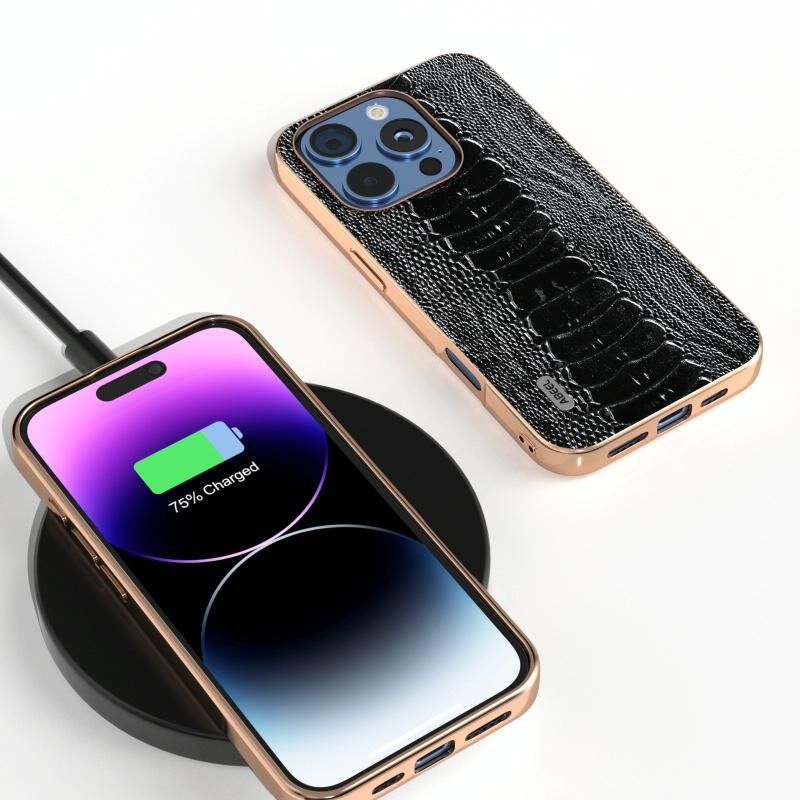 Θήκη τηλεφώνου Weilai Series για iPhone 16 Pro, με ηλεκτρολυτικό πλαίσιο ABEEL και γνήσιο δέρμα (Μαύρο)