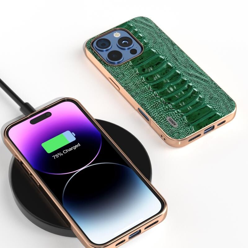 Θήκη τηλεφώνου Weilai Series για iPhone 16 Pro, με ηλεκτρολυτικό πλαίσιο ABEEL και γνήσιο δέρμα (Πράσινο)