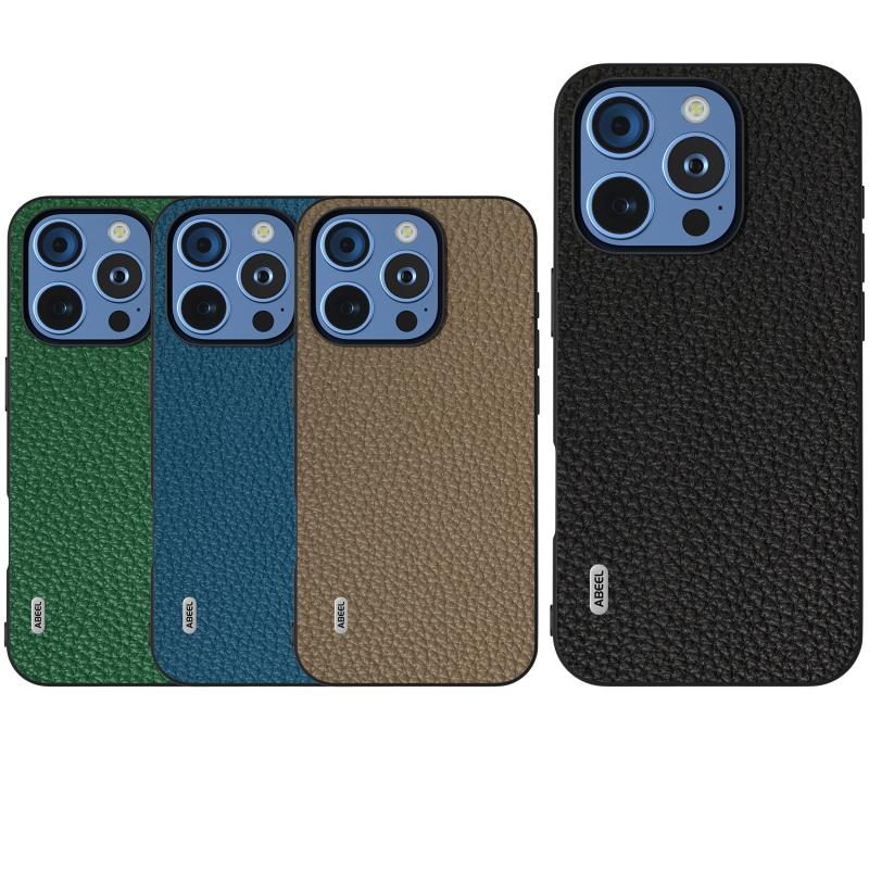 Θήκη τηλεφώνου από γνήσιο δέρμα ABEEL με υφή λυτσί για iPhone 16 Pro (Γκρι)