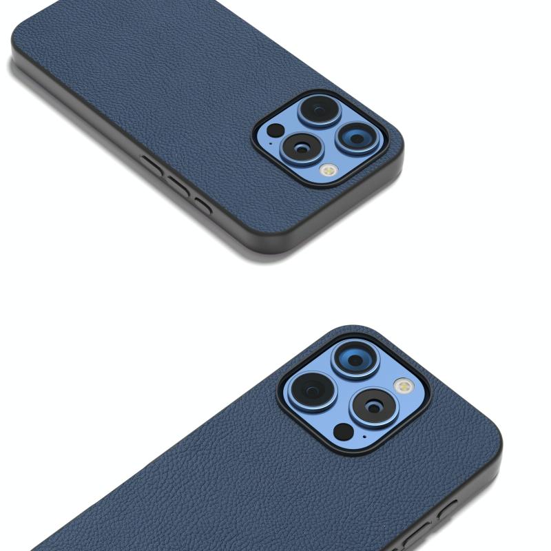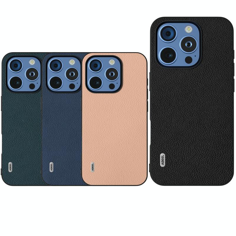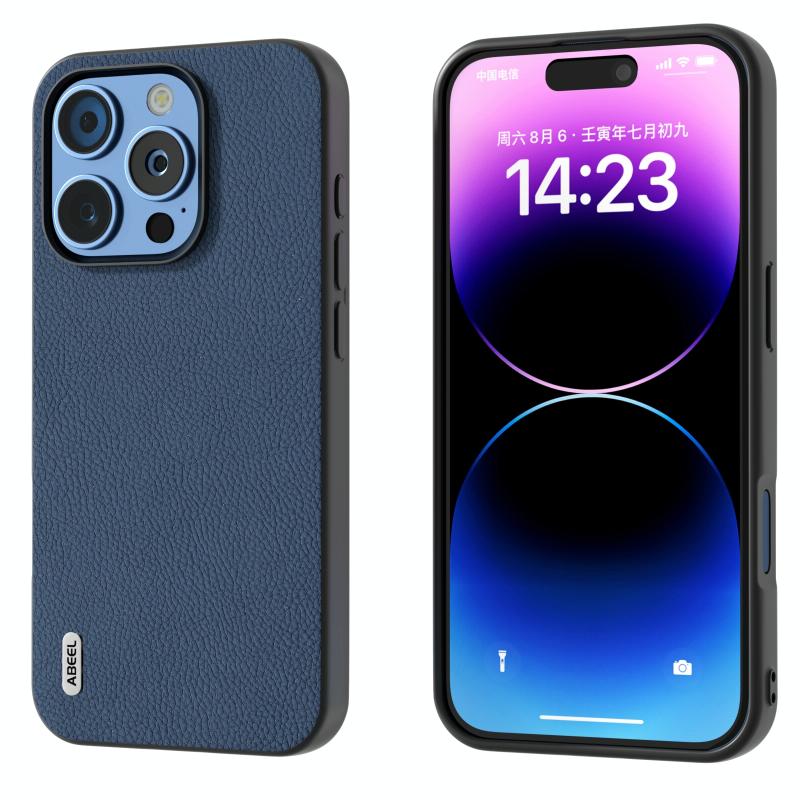 Θήκη τηλεφώνου για iPhone 16 Pro ABEEL από γνήσιο δέρμα + PC με υφή λυτσί (Μπλε)