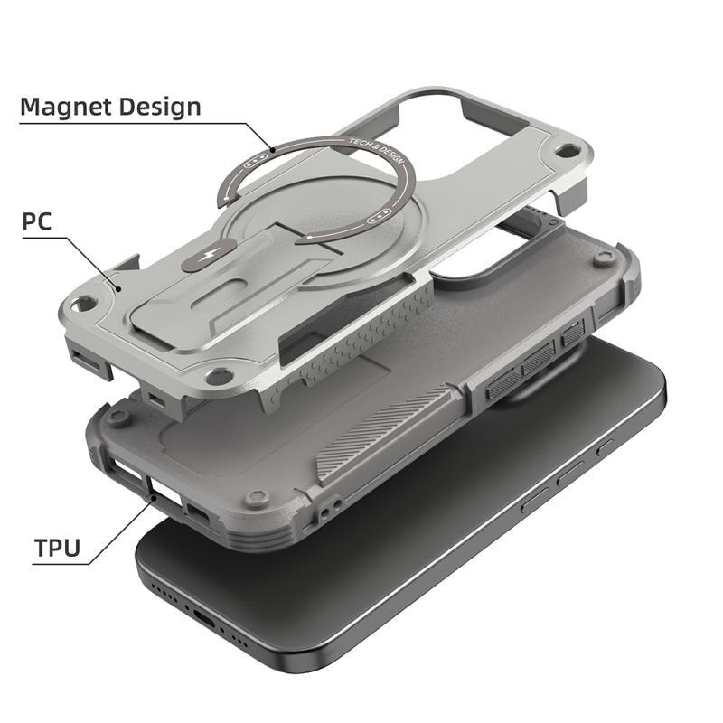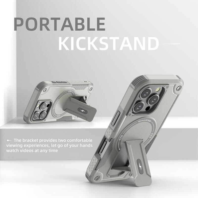 For iPhone 16 Pro Armor Magsafe Holder PC Hybrid TPU Phone Case(Grey)