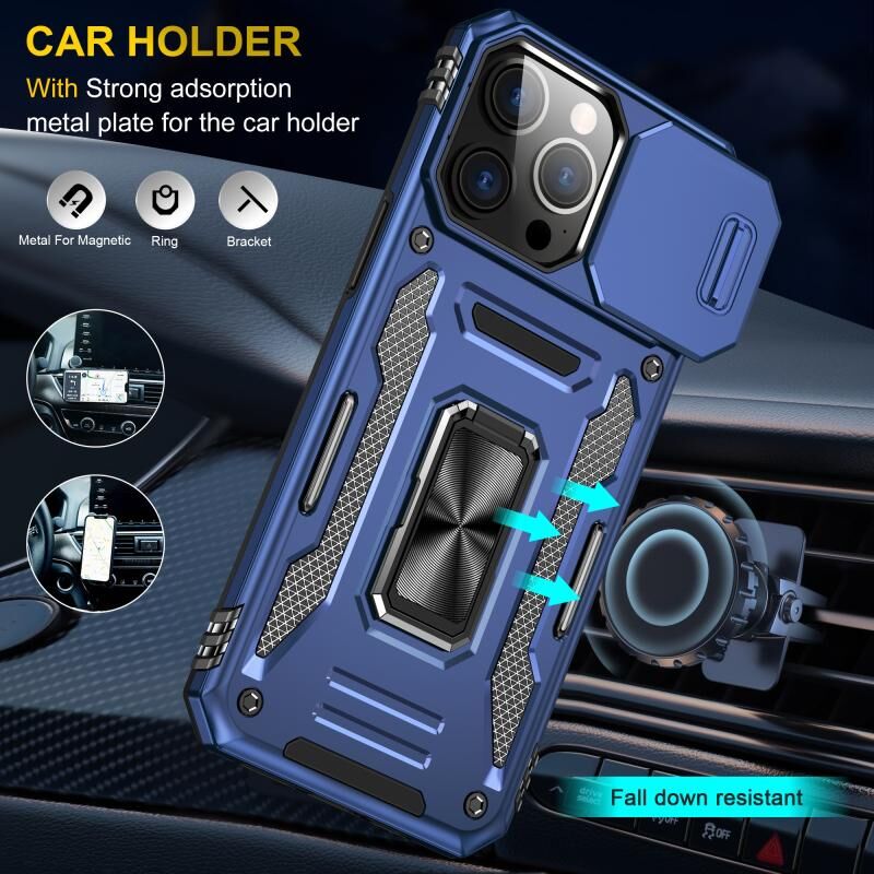 For iPhone 16 Pro Armor PC + TPU Camera Shield Phone Case(Navy Blue)