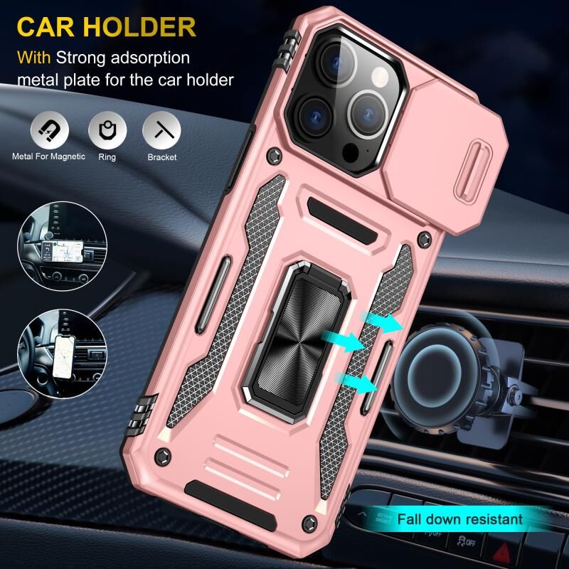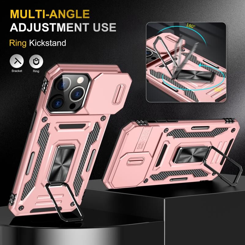 For iPhone 16 Pro Armor PC + TPU Camera Shield Phone Case(Rose Gold)