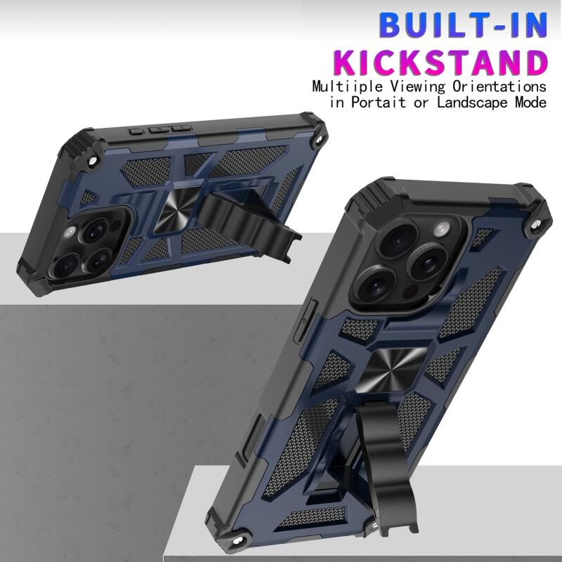 For iPhone 16 Pro Armor Shockproof TPU Hybrid PC Magnetic Phone Case with Holder(Blue)