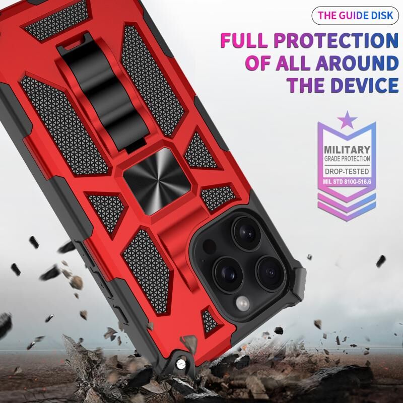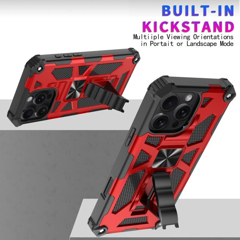 For iPhone 16 Pro Armor Shockproof TPU Hybrid PC Magnetic Phone Case with Holder(Red)