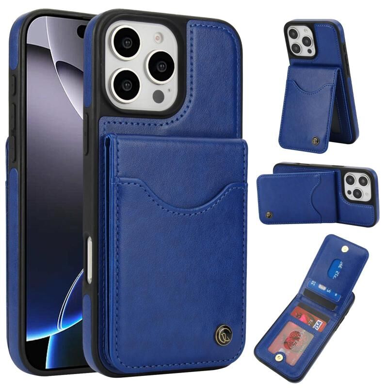 Θήκη τηλεφώνου από δέρμα με κάθετη θήκη καρτών και αναδιπλούμενο καπάκι για iPhone 16 Pro (Μαύρο) (Awquer)