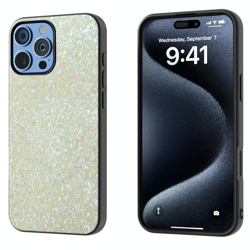 Θήκη τηλεφώνου για iPhone 16 Pro Μαύρο πλαίσιο, πολύχρωμη γκλίτερ (Σκούρο Ροζ)