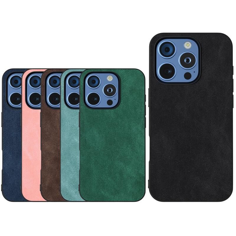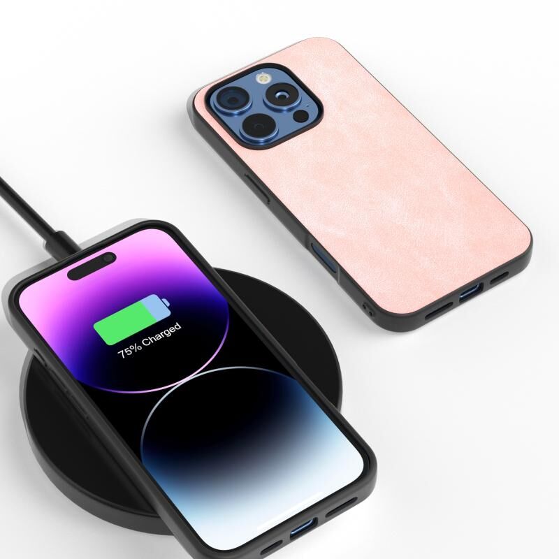 Θήκη τηλεφώνου πλήρους κάλυψης από δερματίνη PU για iPhone 16 Pro, Μαύρο πλαίσιο (Ροζ)