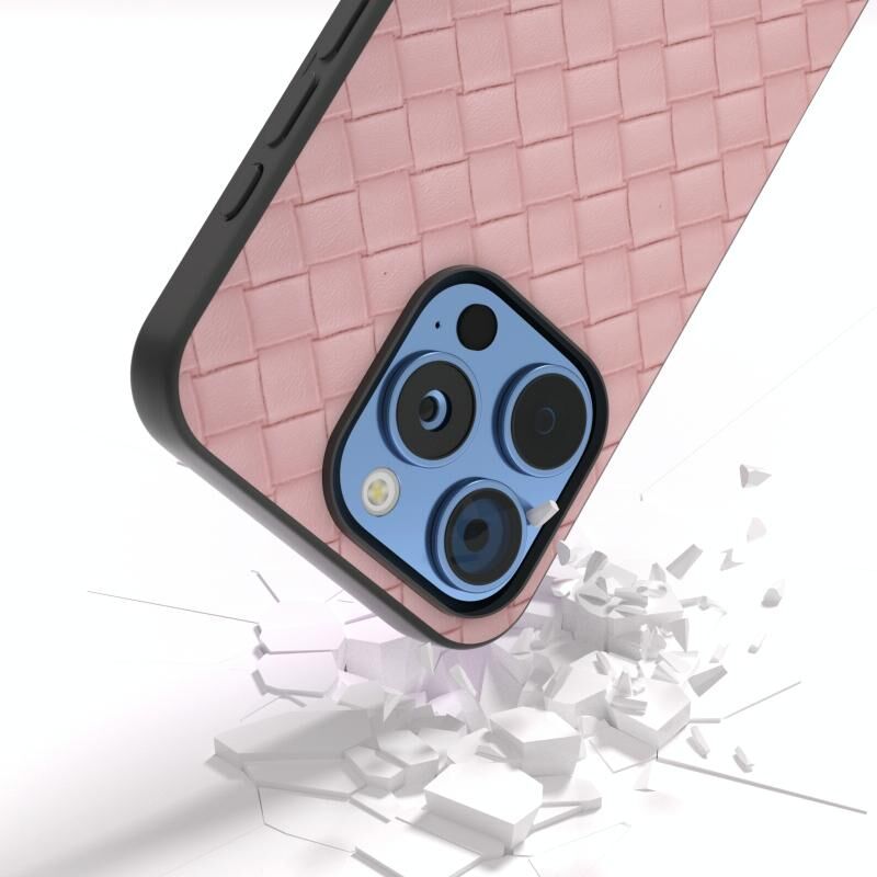 For iPhone 16 Pro Black Frame Woven Texture PU Phone Case(Pink)