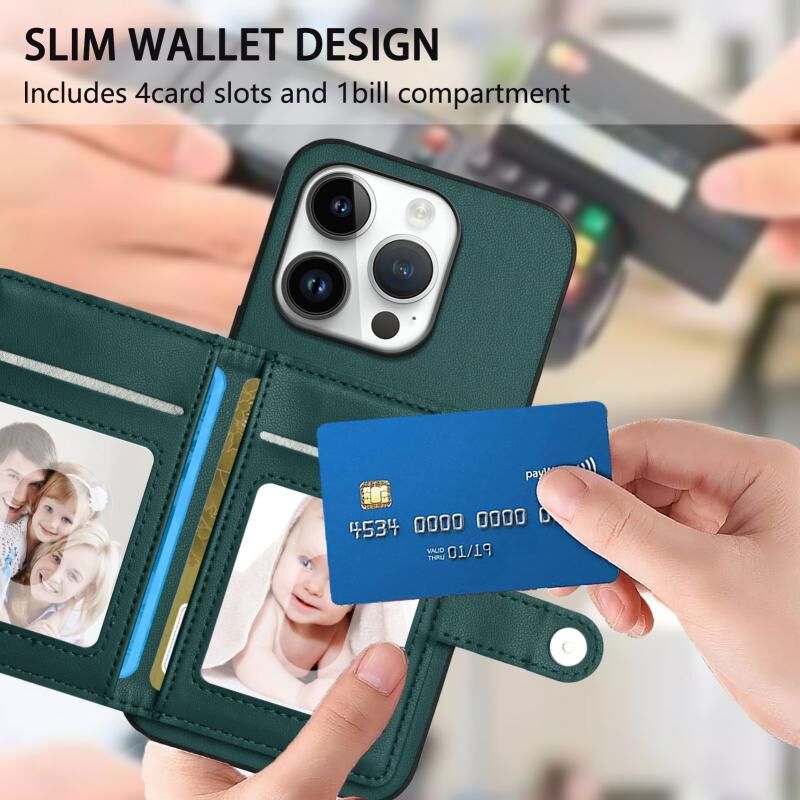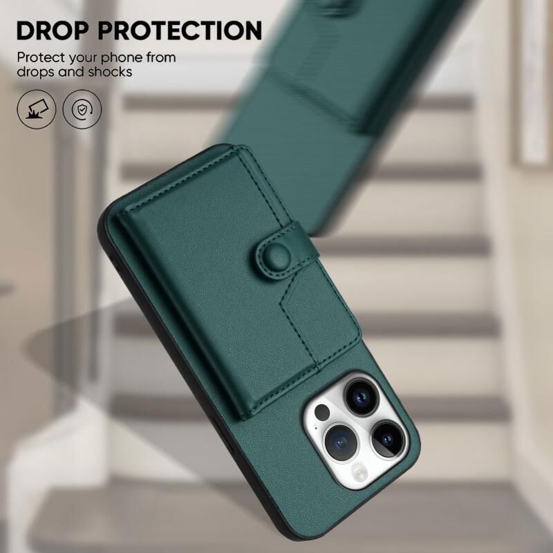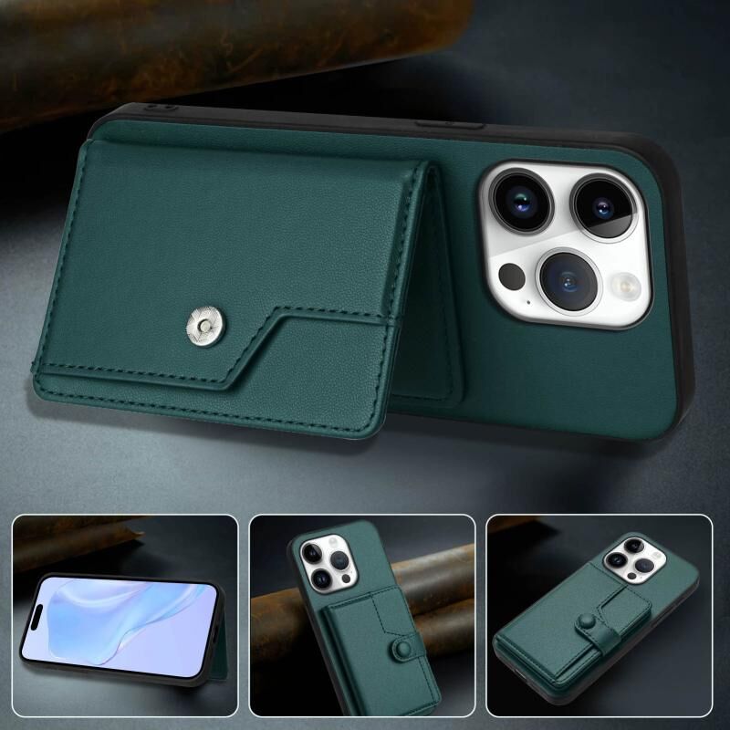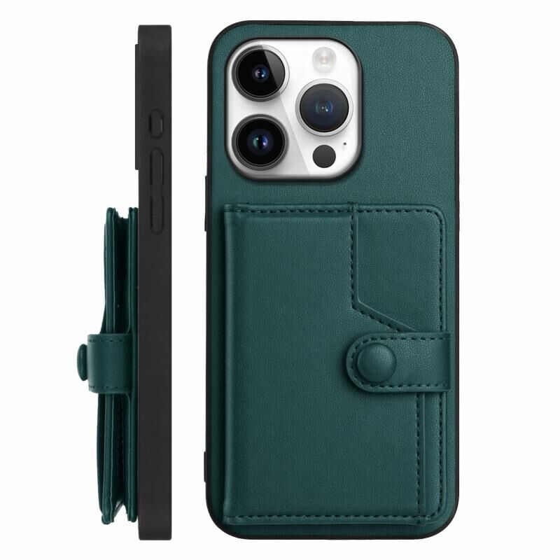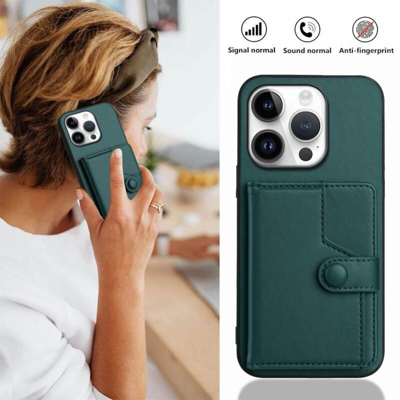 For iPhone 16 Pro Button Card Bag RFID Anti-theft Phone Case(Green)