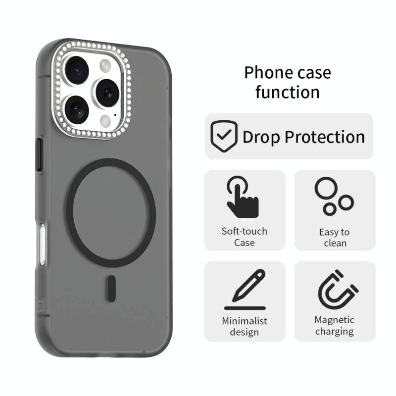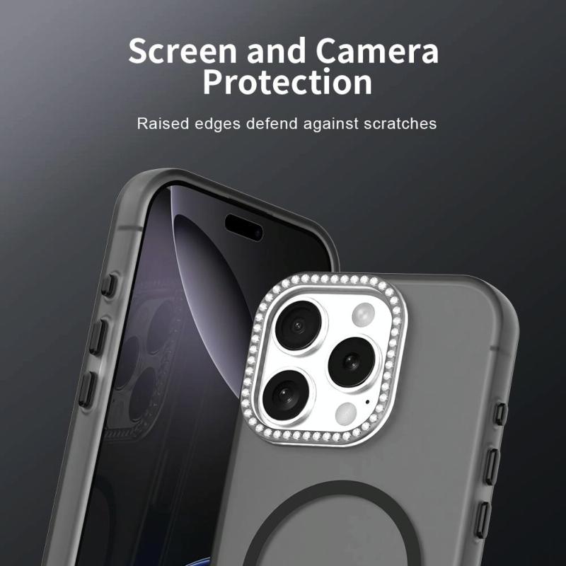Θήκη iPhone 16 Pro Candy Diamond Magsafe, Υβριδική TPU & PC (Μαύρο)