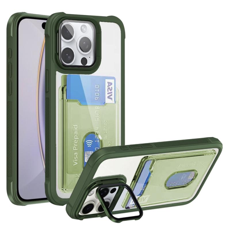 For iPhone 16 Pro Card Bag Holder Acrylic Hybrid TPU Phone Case(Green)