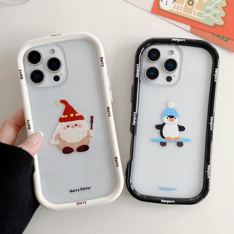 Θήκη τηλεφώνου για iPhone 16 Pro με χριστουγεννιάτικο σχέδιο, πολύχρωμο πλαίσιο PC και διαφανές TPU (Πιγκουίνος)