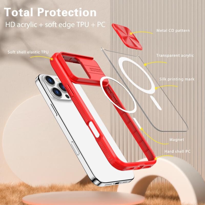 Θήκη κινητού τηλεφώνου πλήρους κάλυψης για iPhone 16 Pro με διαφανές ακρυλικό + PC + TPU, με ολισθητικό κάλυμμα φακού MagSafe (Ροζ+Κυανό)