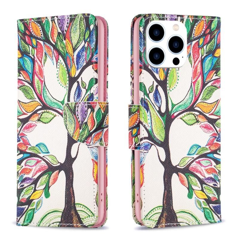 Θήκη τηλεφώνου από δέρμα με έγχρωμο σχέδιο για iPhone 16 Pro (Δέντρο της Ζωής)