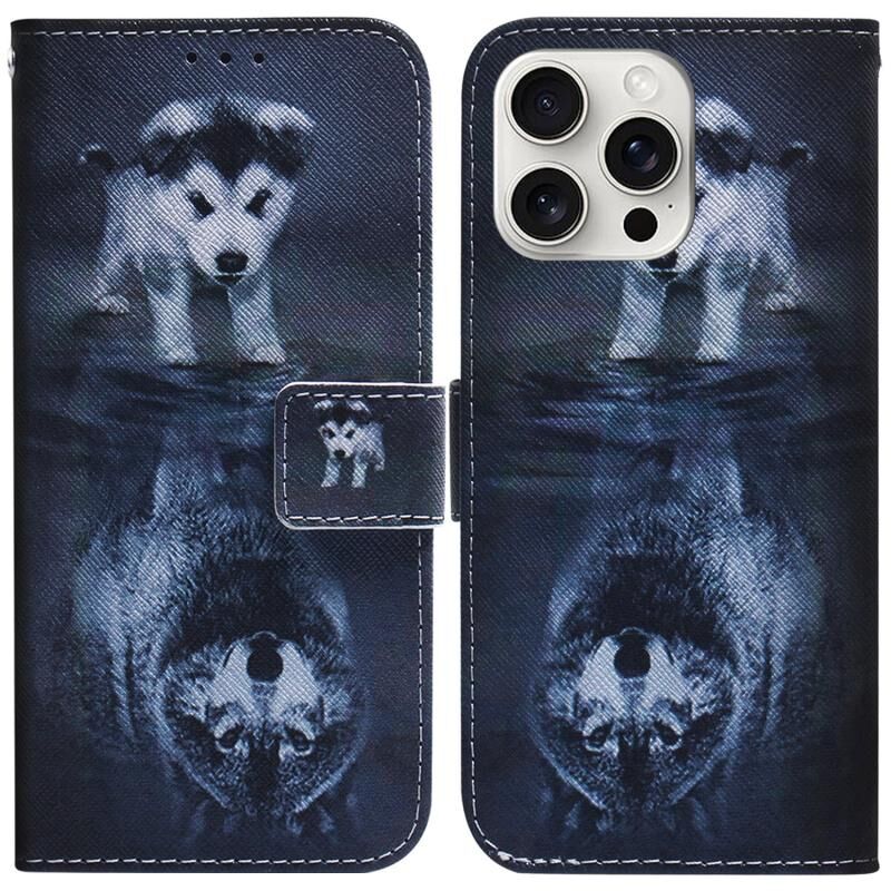For iPhone 16 Pro Coloured Drawing Flip Leather Phone Case(Wolf and Dog)