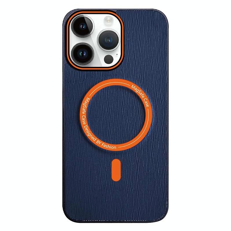 Θήκη τηλεφώνου MagSafe με απομίμηση ξύλινης υφής σε αντίθετα χρώματα για iPhone 16 Pro (Ναυτικό Μπλε)