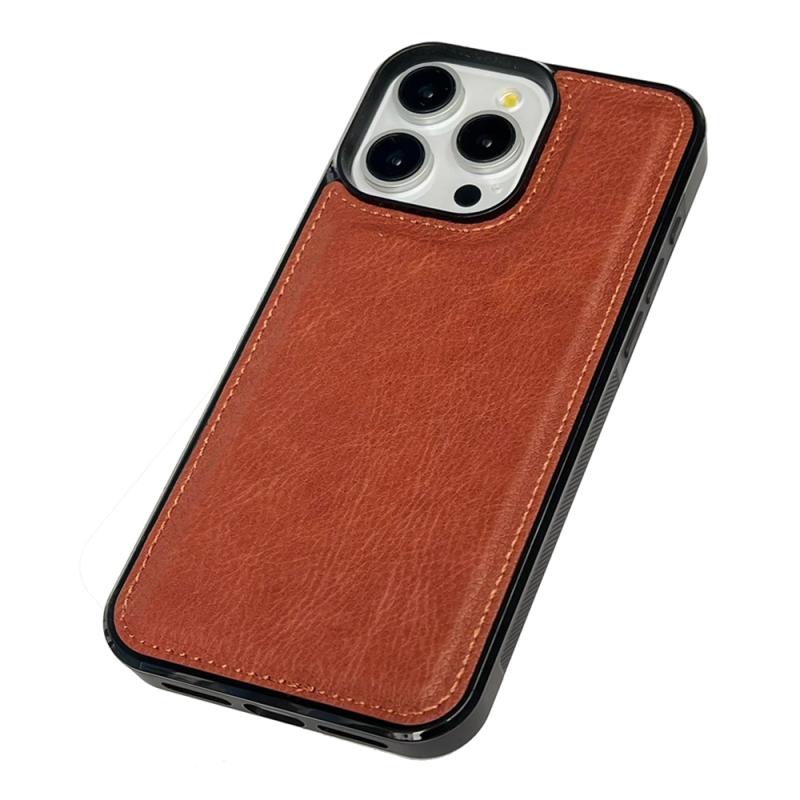For iPhone 16 Pro Cowhide Texture Back Cover Phone Case(Brown)