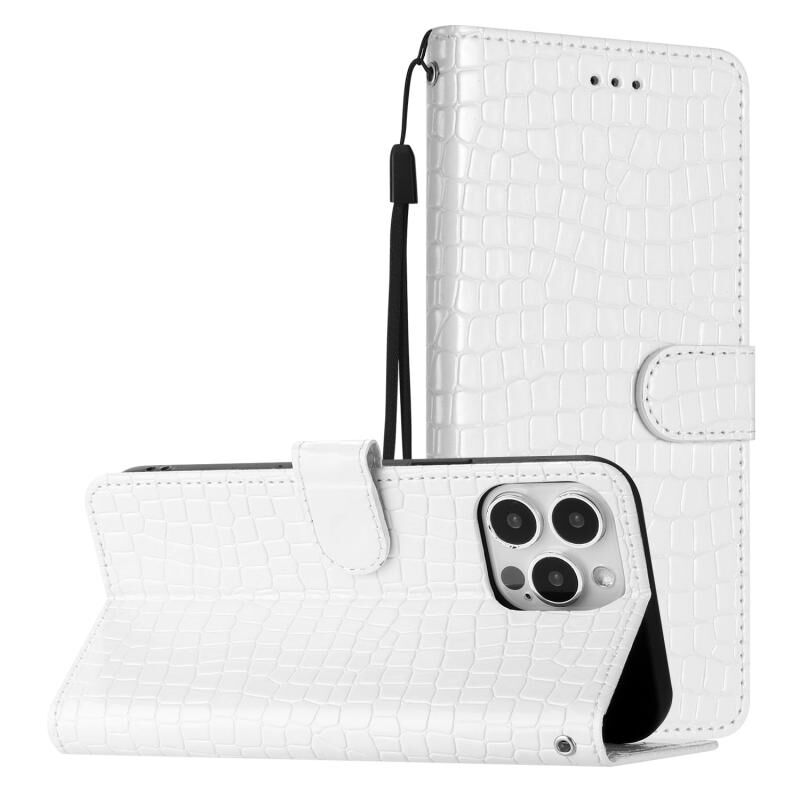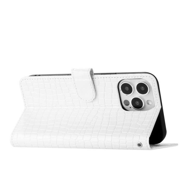 For iPhone 16 Pro Crocodile Texture Horizontal Flip Leather Phone Case(White)