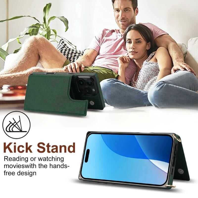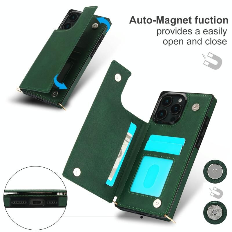 Θήκη τηλεφώνου τύπου πορτοφολιού με κάρτες, διαγώνια, τετράγωνη, με διπλή αγκράφα για iPhone 16 Pro (Κόκκινη)
