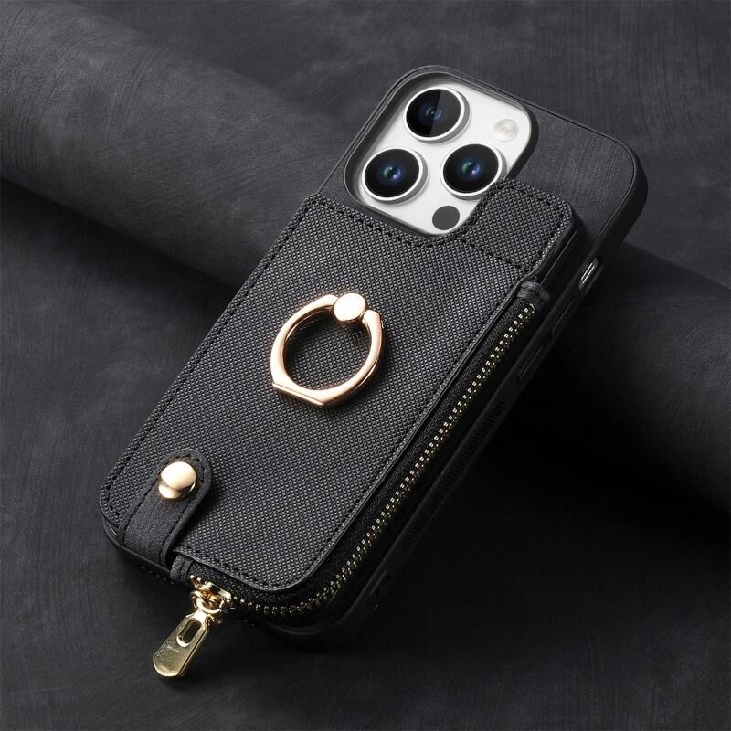 2. Λειτουργία πορτοφολιού με φερμουάρ: Η δερμάτινη θήκη είναι εξοπλισμένη με υποδοχές για κάρτες και ένα μικρό ποσό μετρητών.
