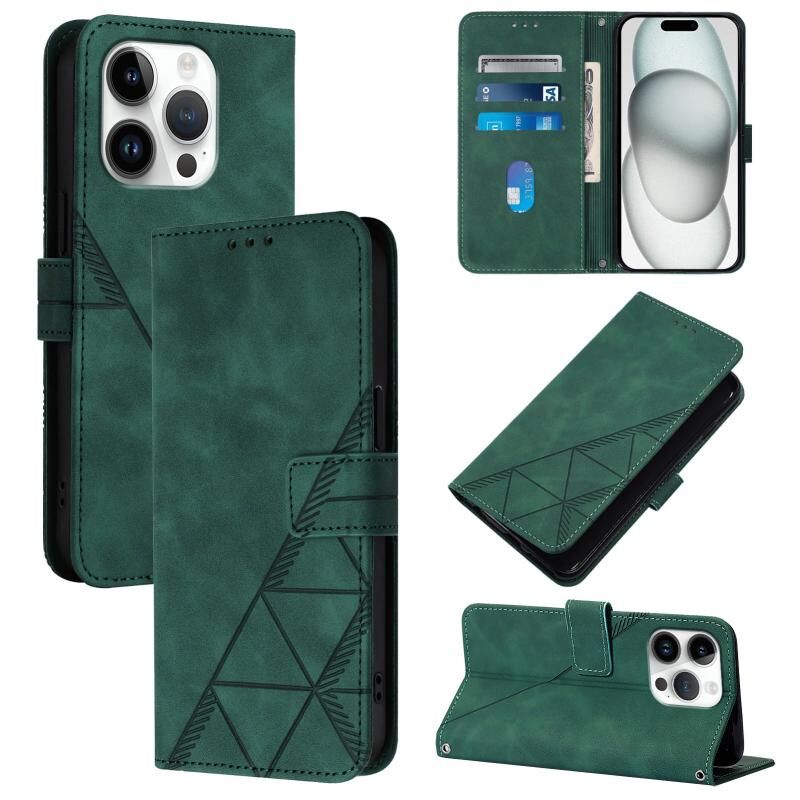 For iPhone 16 Pro Crossbody 3D Embossed Flip Leather Phone Case(Dark Green)
