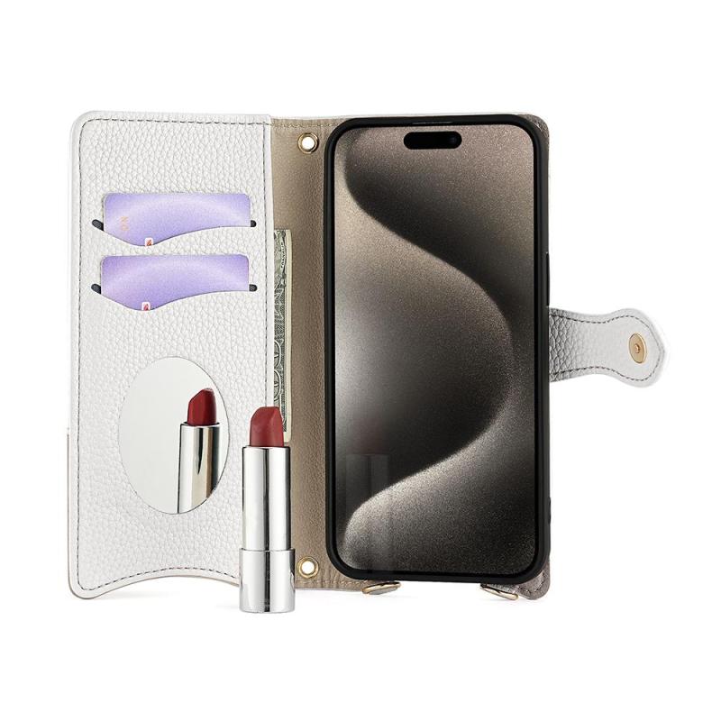 7. Built-in Oval Stainless Steel Makeup Mirror: A durable, scratch-resistant oval mirror inside the phone case for easy makeup touch-ups on the go.